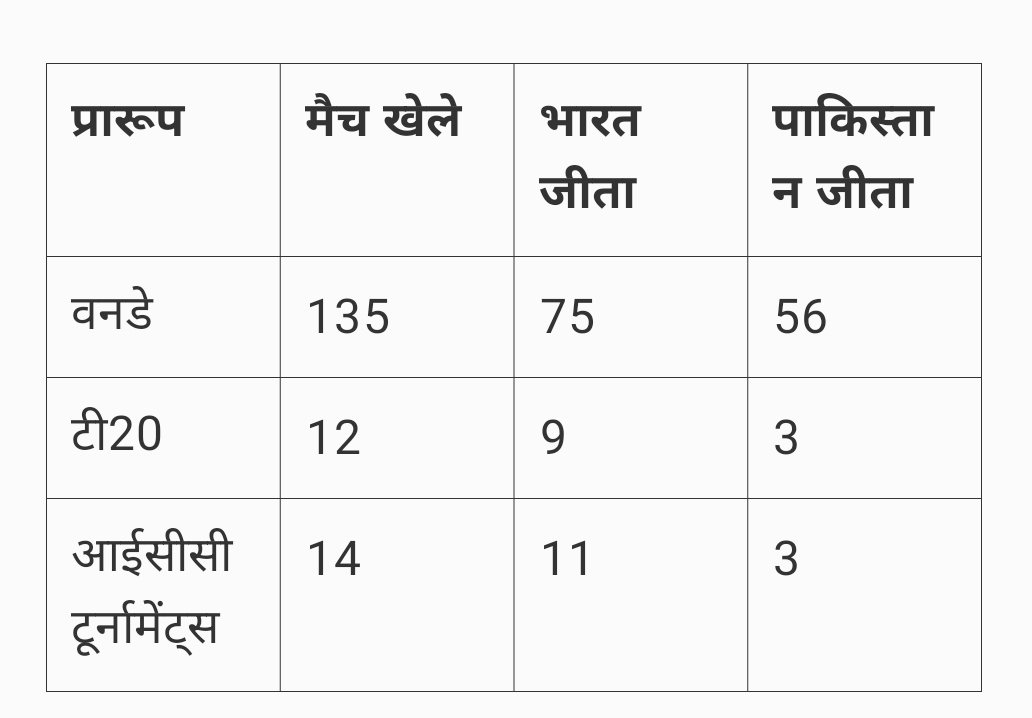 अब तक खेले गए भारत-पाकिस्तान मुकाबलों में भारत का रिकॉर्ड बेहतरीन रहा है। आईसीसी टूर्नामेंट्स में भारत ने हमेशा पाकिस्तान पर दबदबा बनाए रखा है।