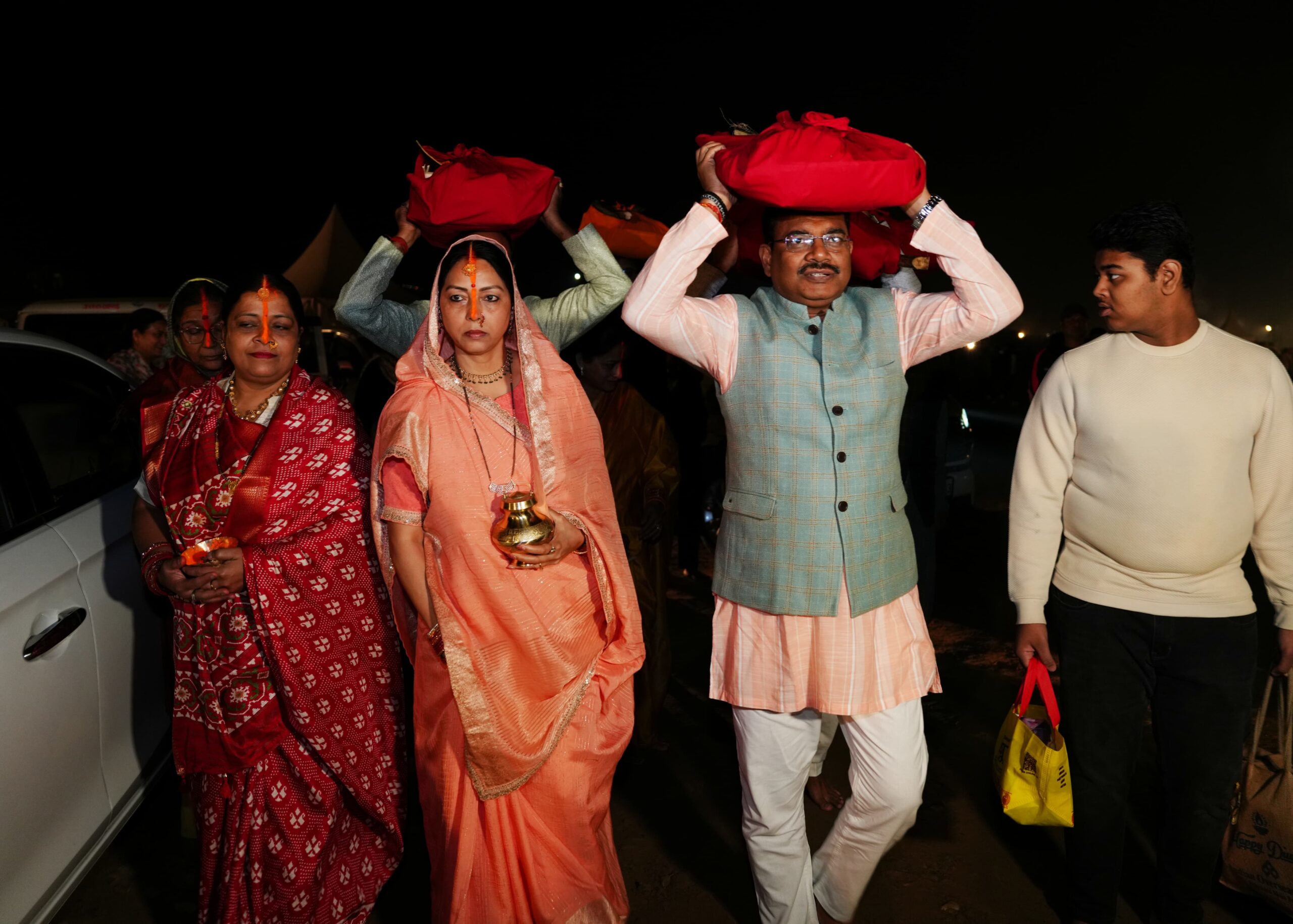 व्रती महिलाओं ने 36 घंटे के निर्जल व्रत का पालन करते हुए परिवार की समृद्धि और मंगल की कामना की। व्रत के साथ लोकगीतों की गूंज और सूर्य आराधना की सामूहिक भावना ने माहौल को और भी पवित्र बना दिया।